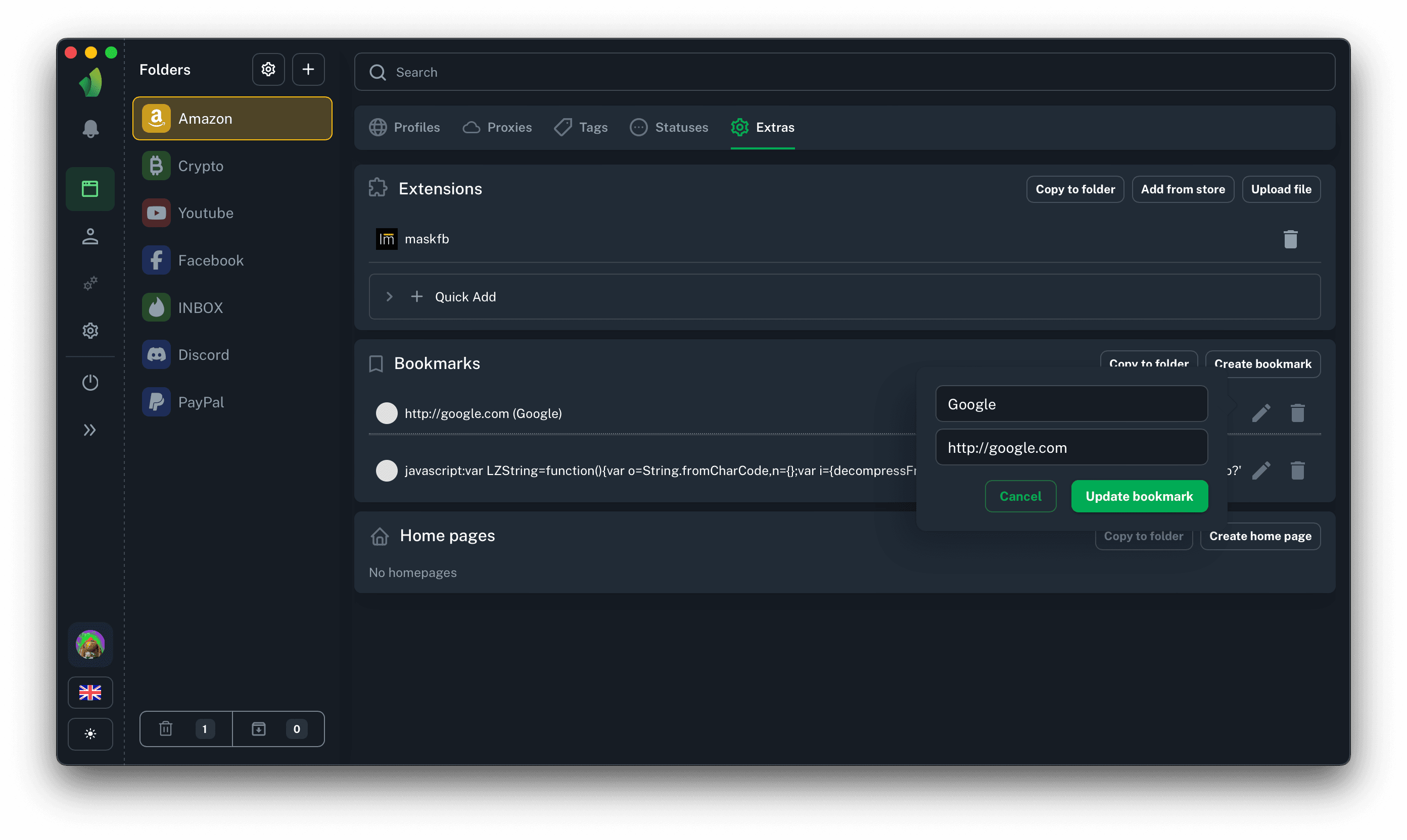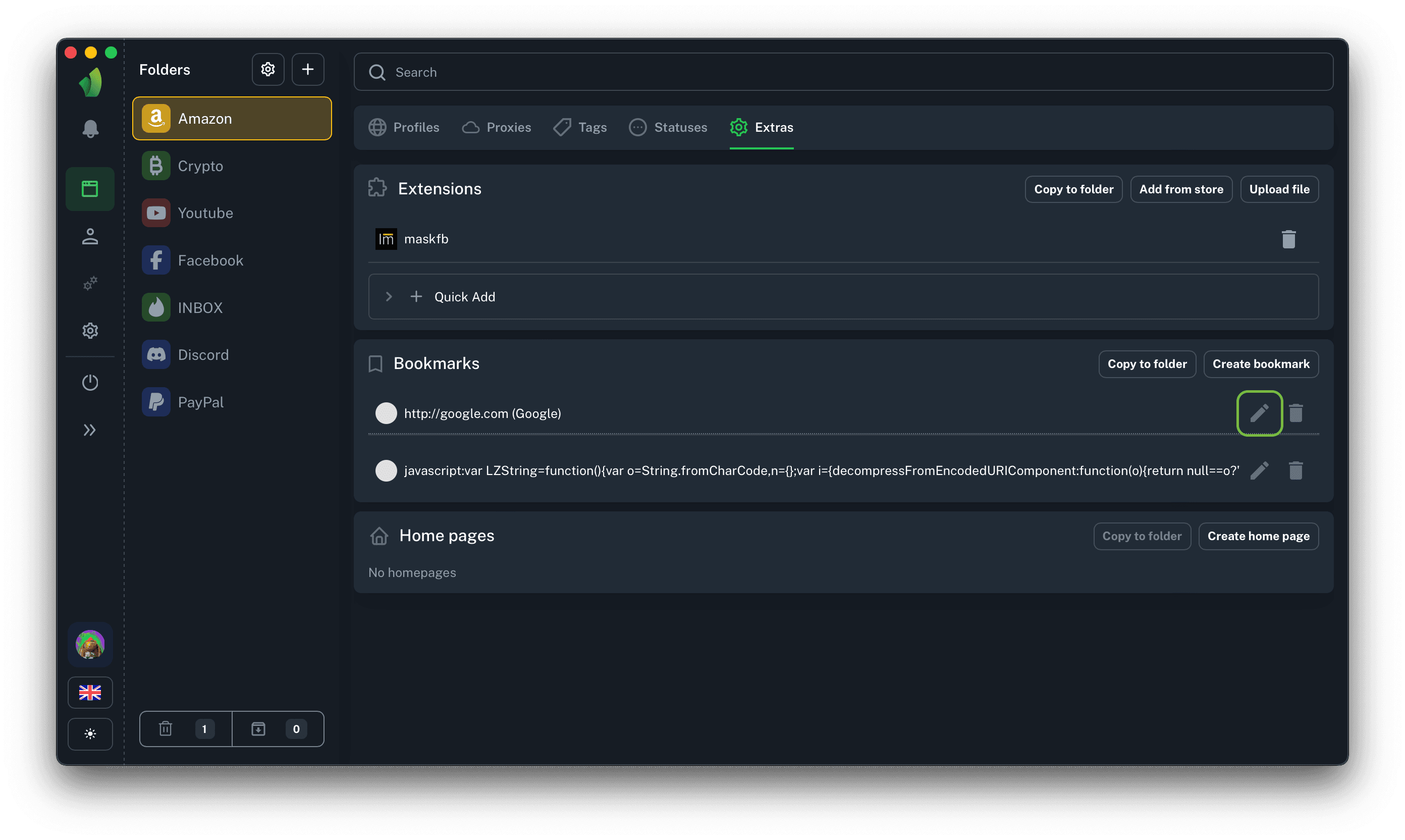 It is important to understand that in the profiles that were running at the time of editing the bookmark, the data will be changed only after restarting browser profile.