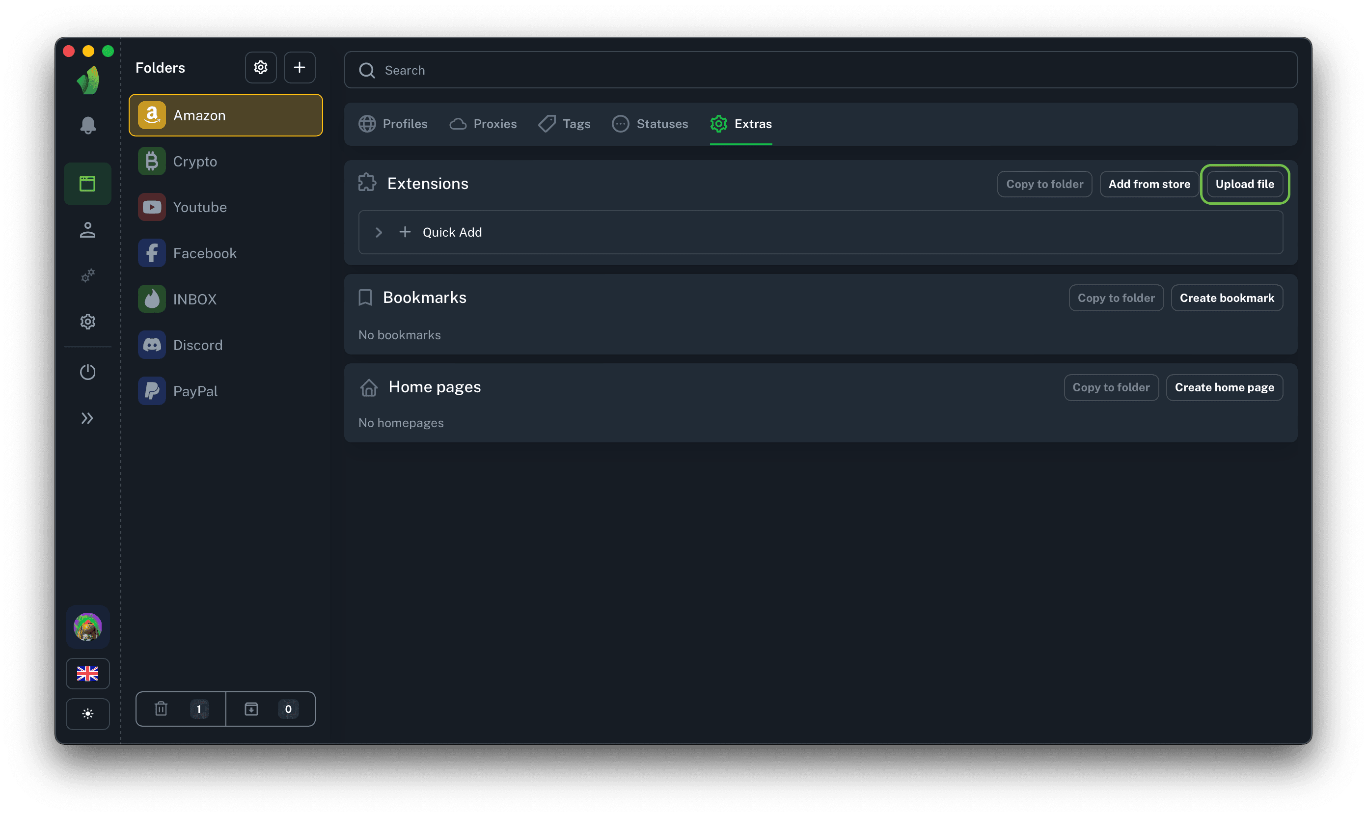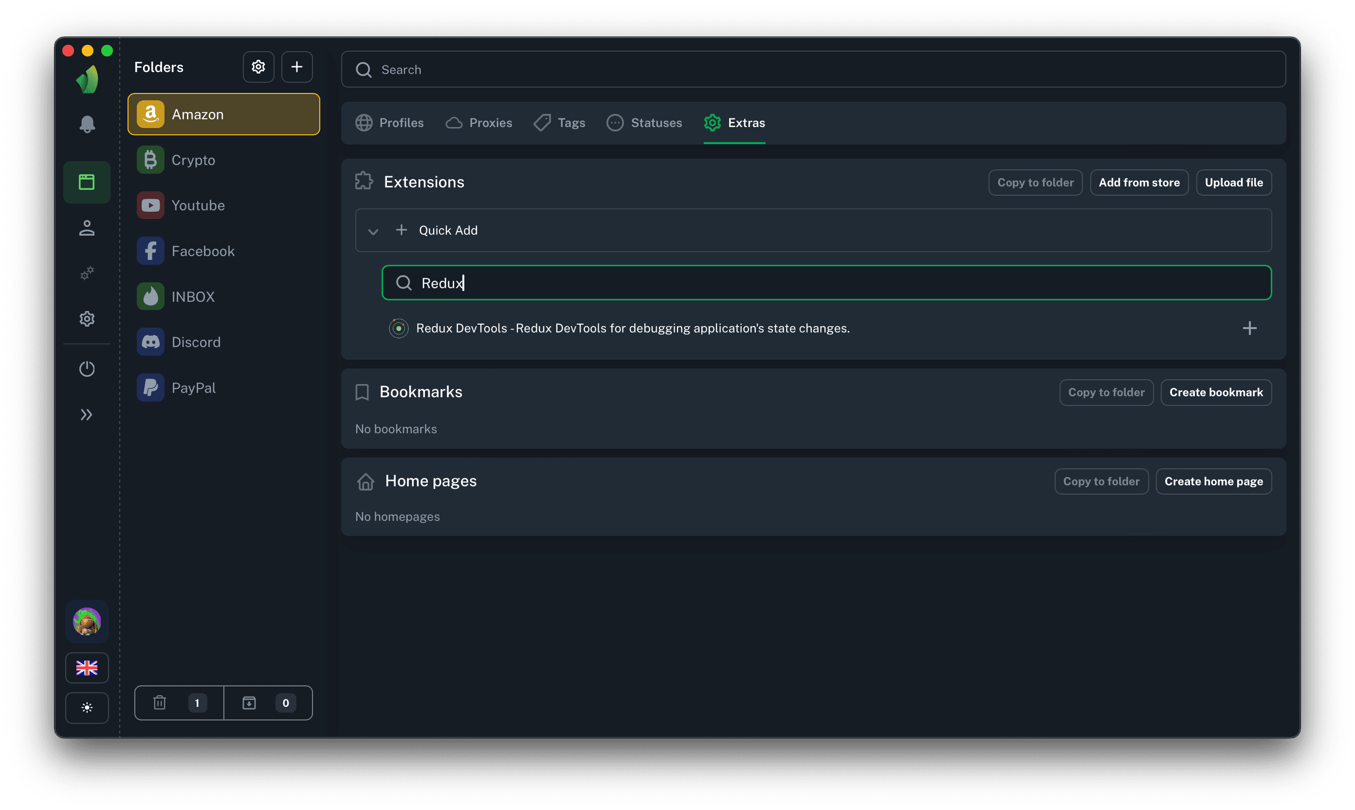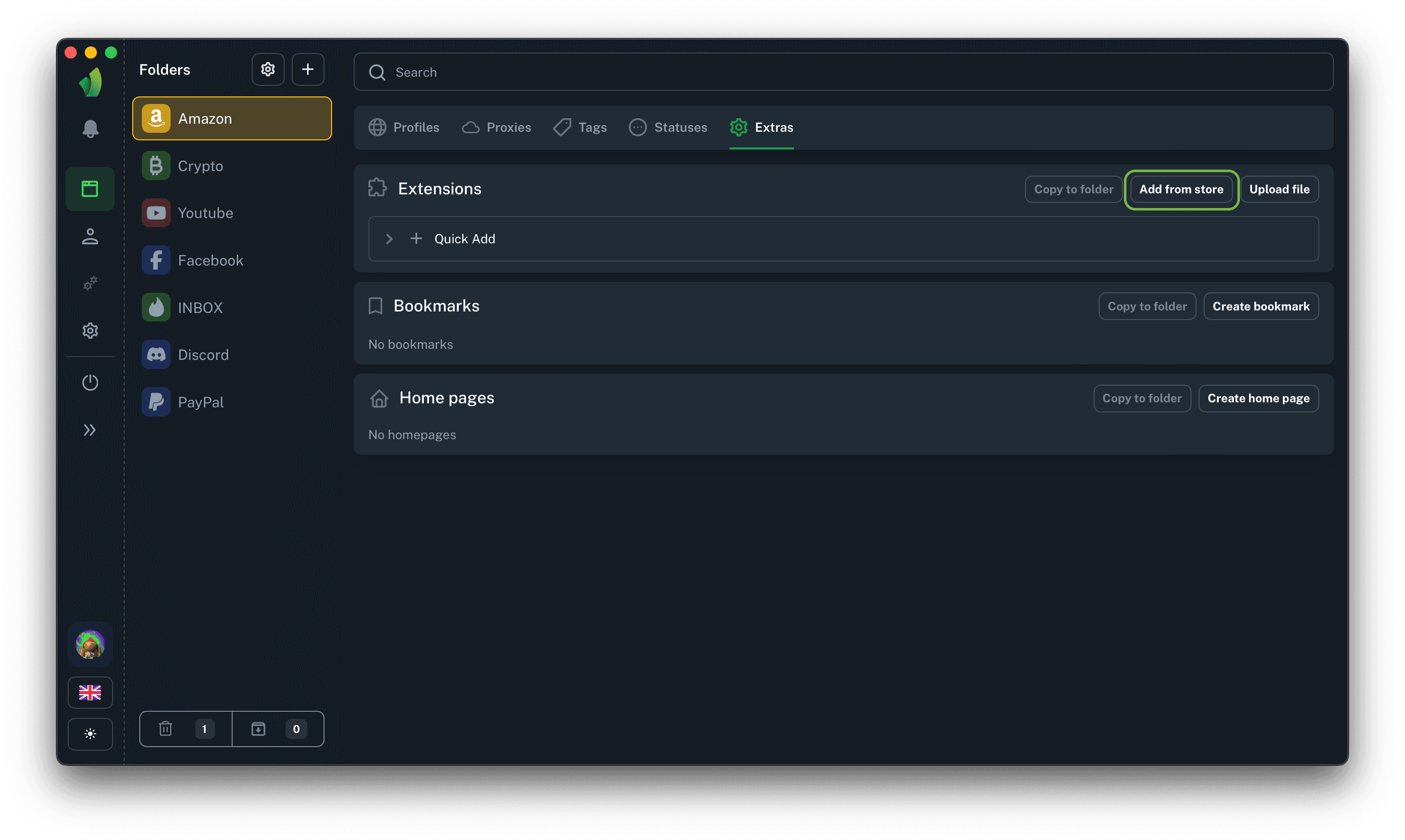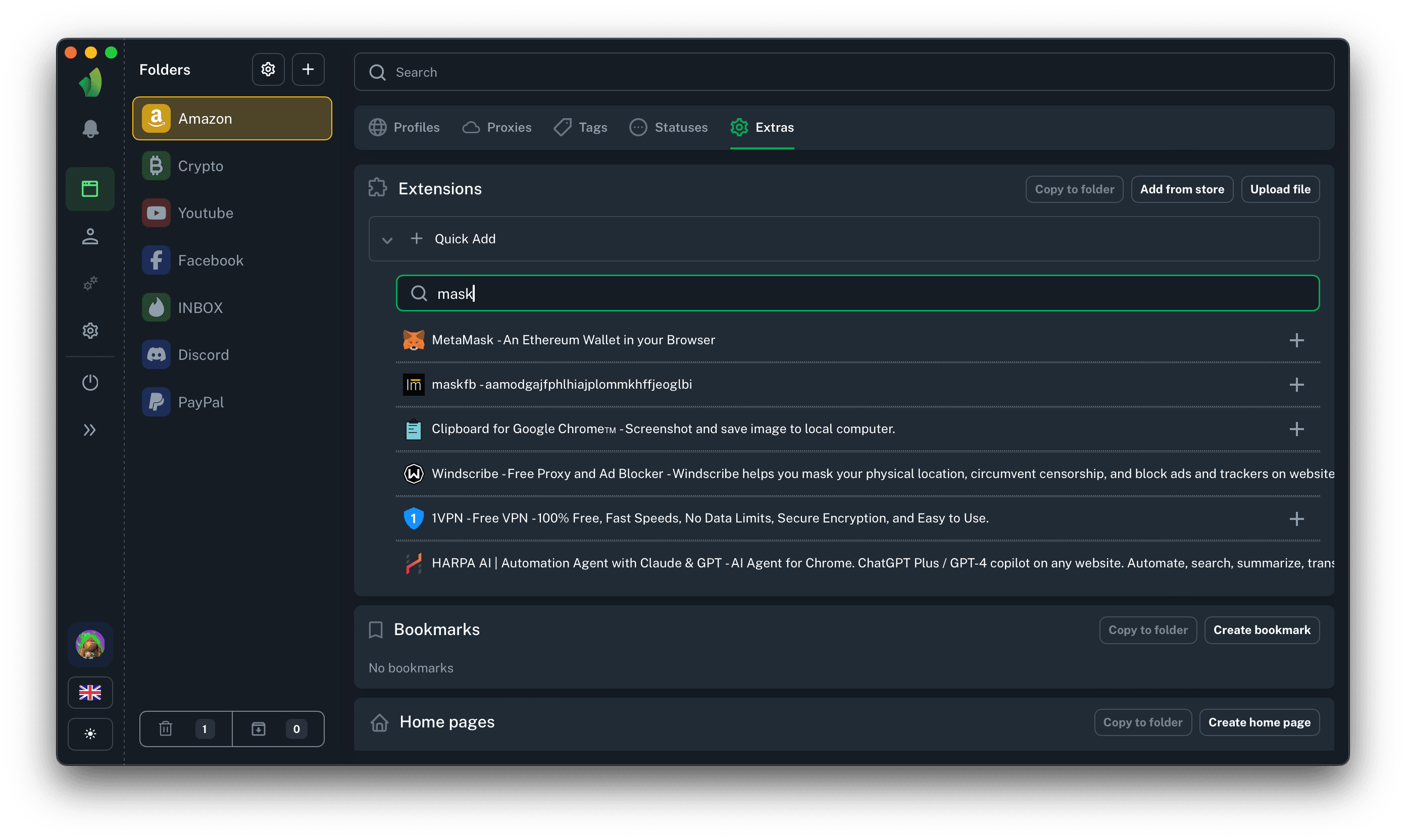 After clicking on the + icon, the extension will be automatically added to all profiles, as well as to the list of extensions in the current folder.