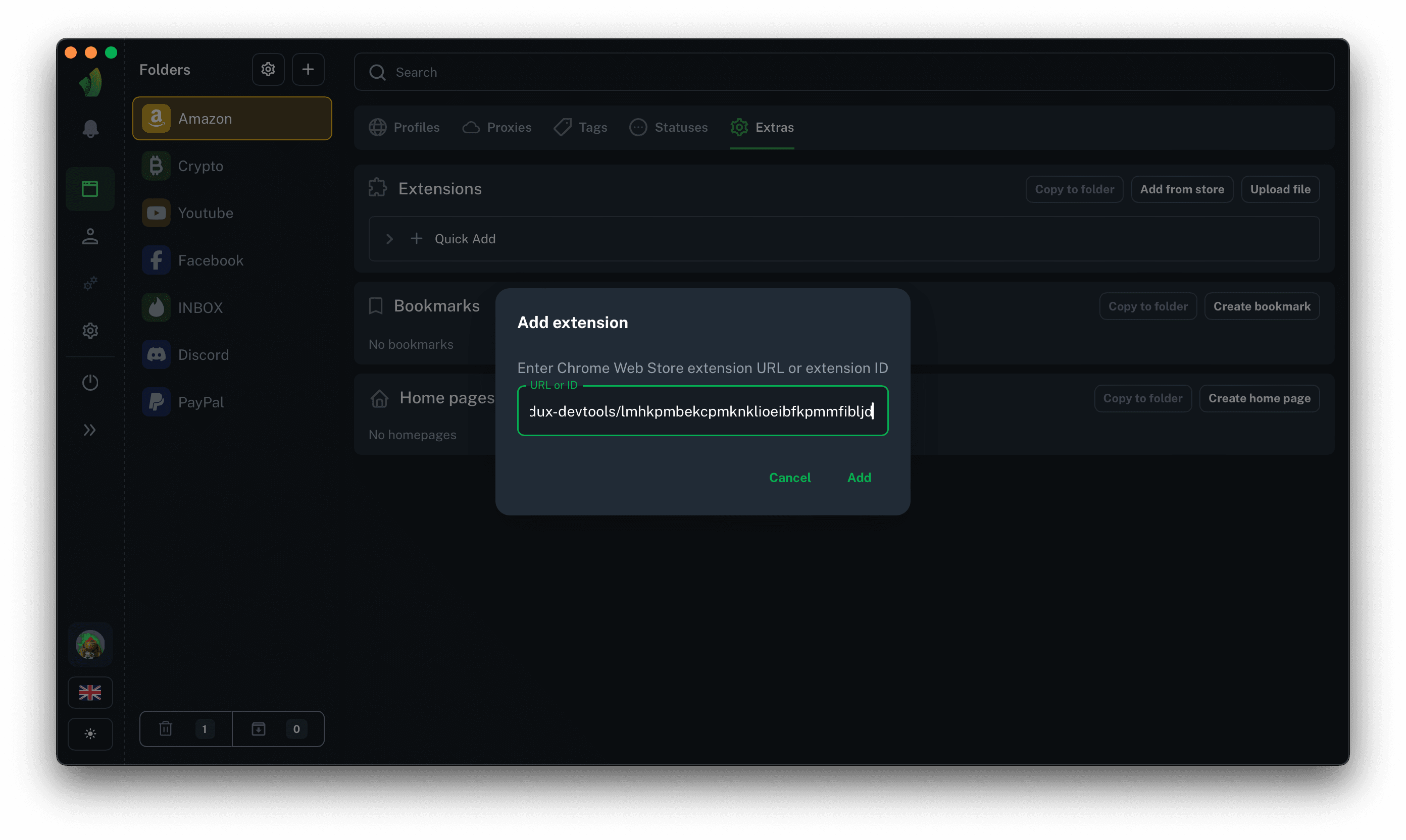 Paste the link to the extension in the modal window and click Add