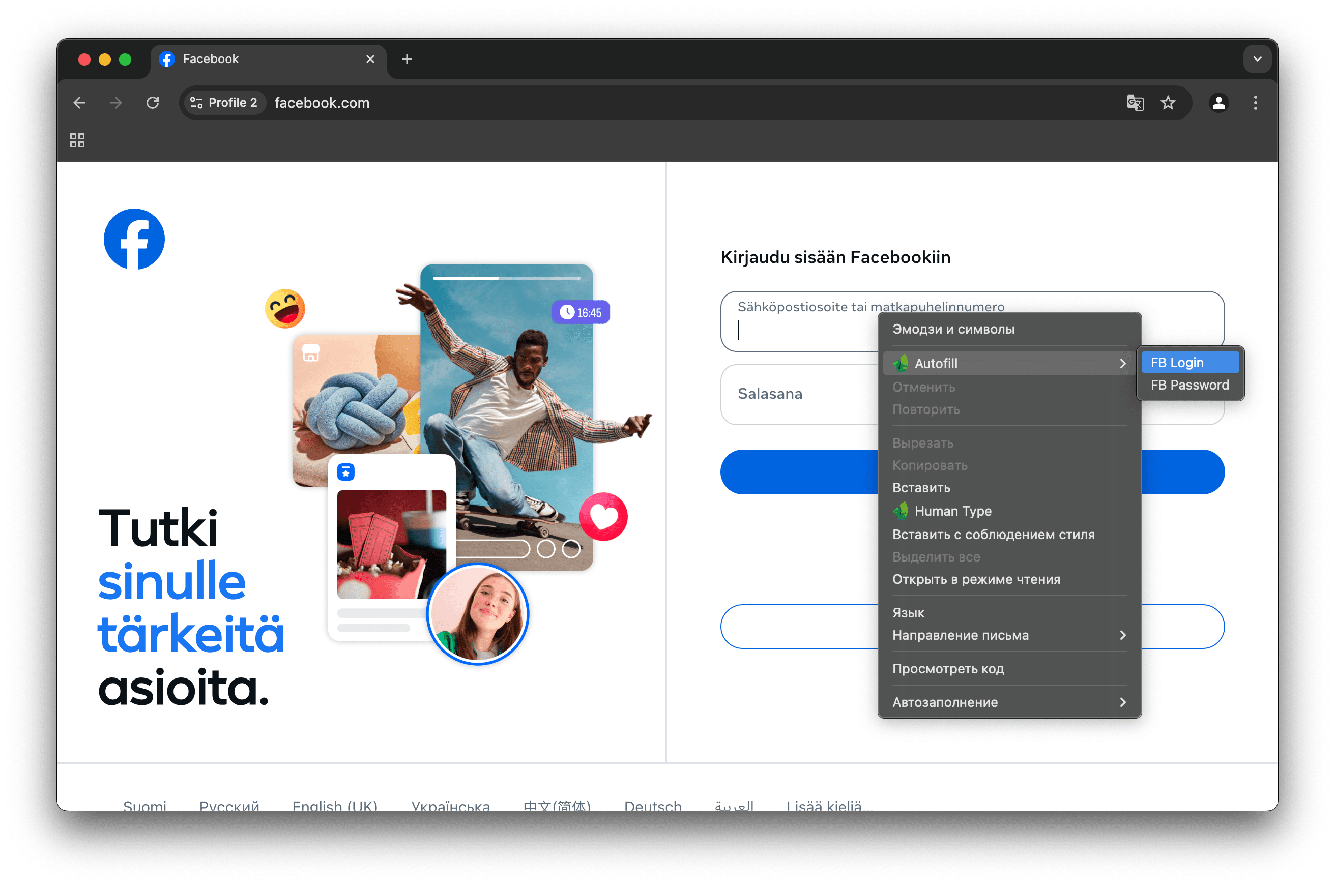In order to use the data from the notes, you need to go to the desired website and in the field for data entry call the context menu by right-clicking the mouse, go to the item Autofill and select the parameter whose value should be entered in this field.
