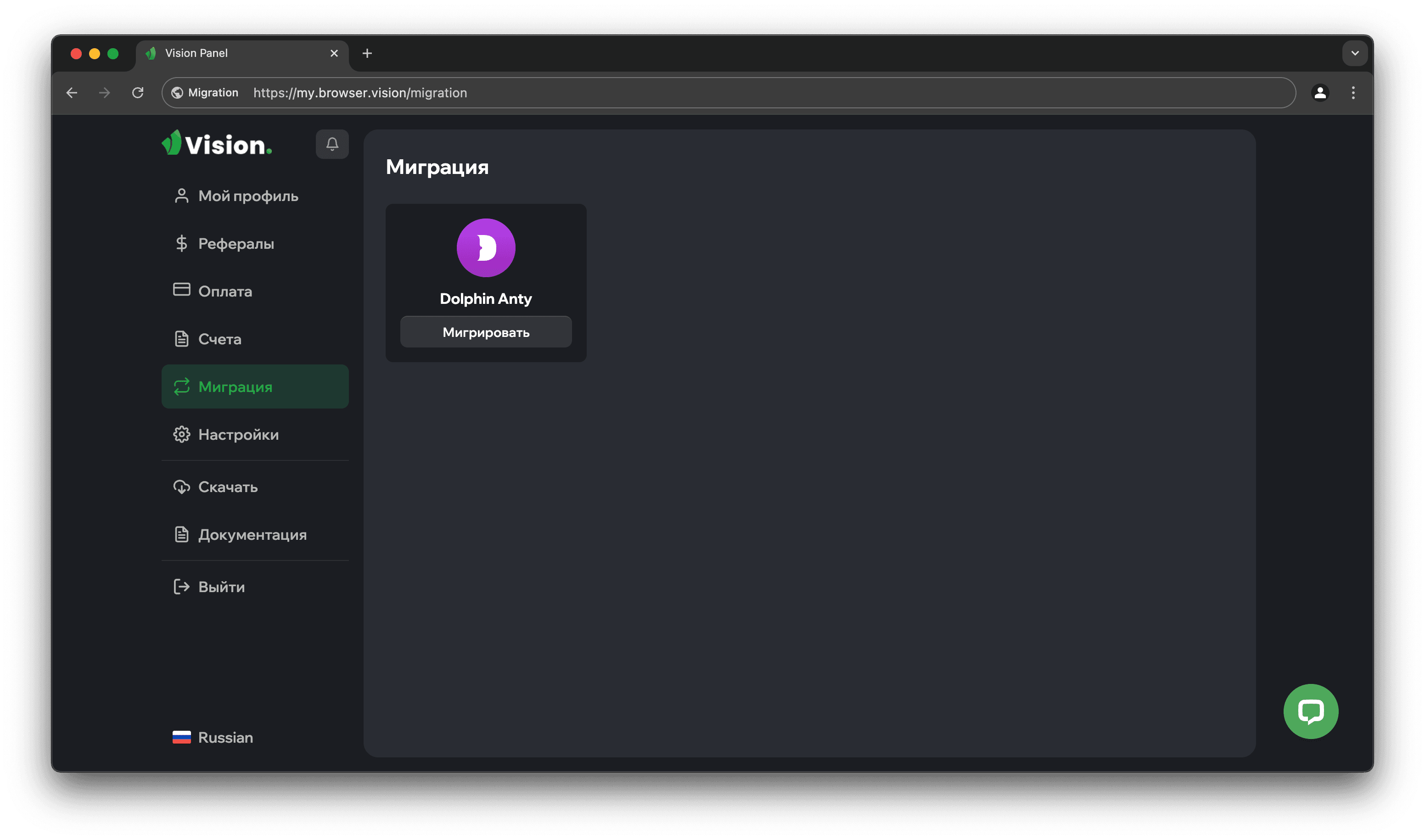 Vision предлагает инструмент простой миграции с других анти-детект браузеров с минимальным набором требуемой информации.
