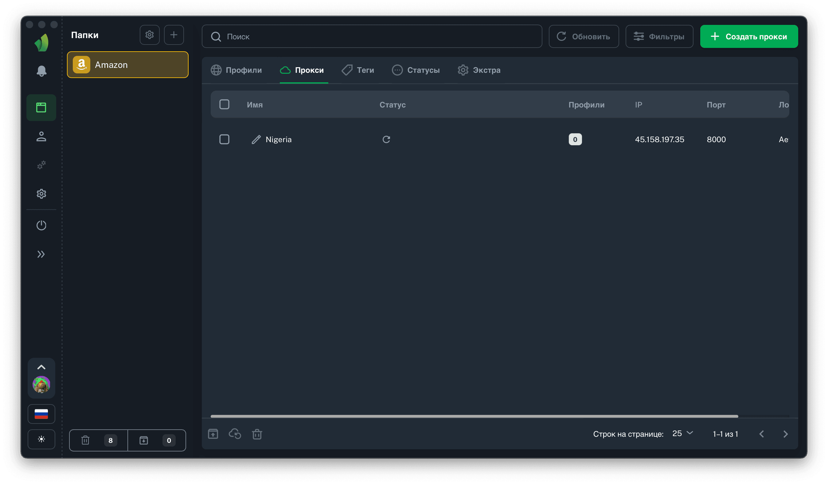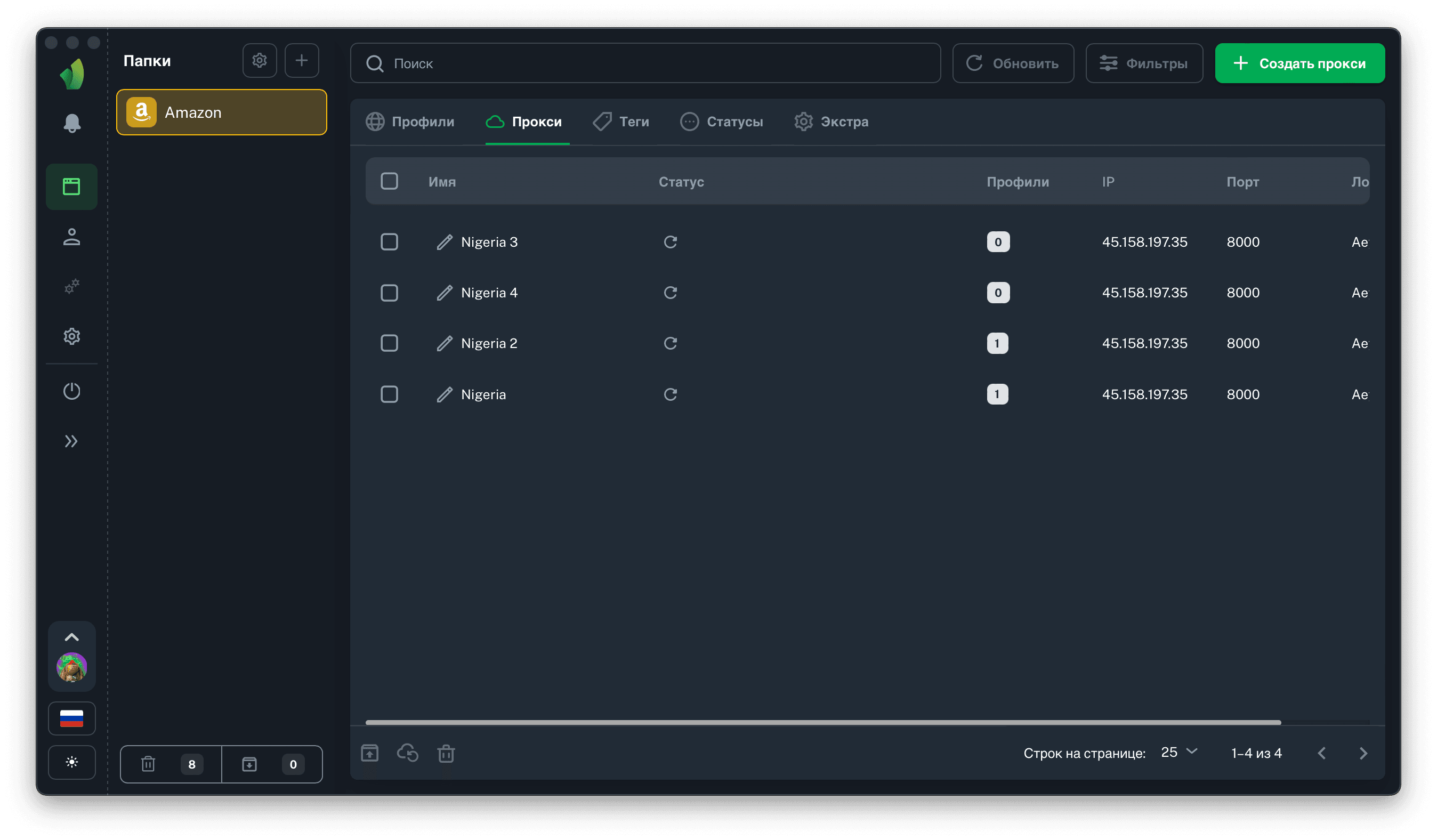 После сохранения прокси будут добавлены в раздел Прокси в текущей папке