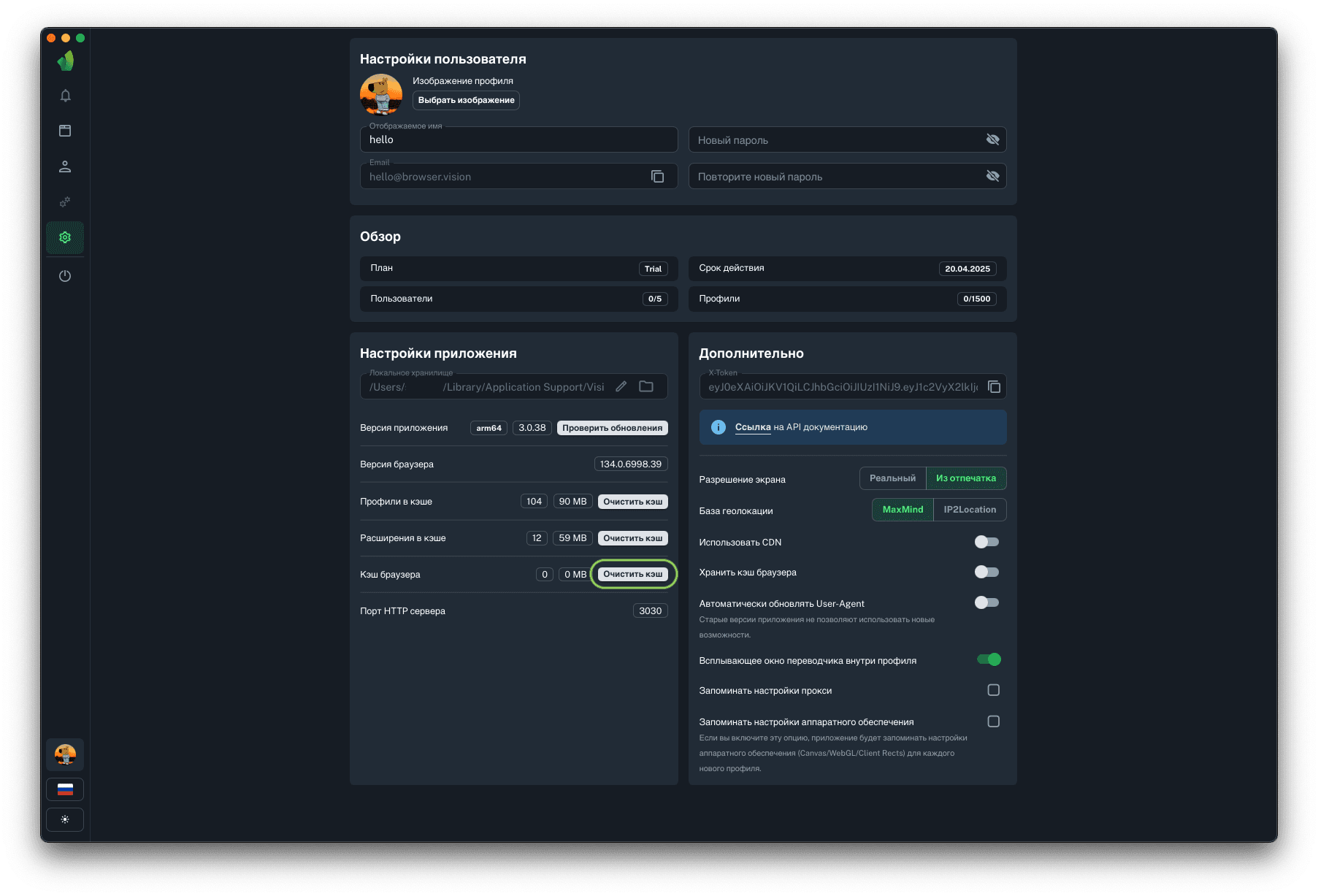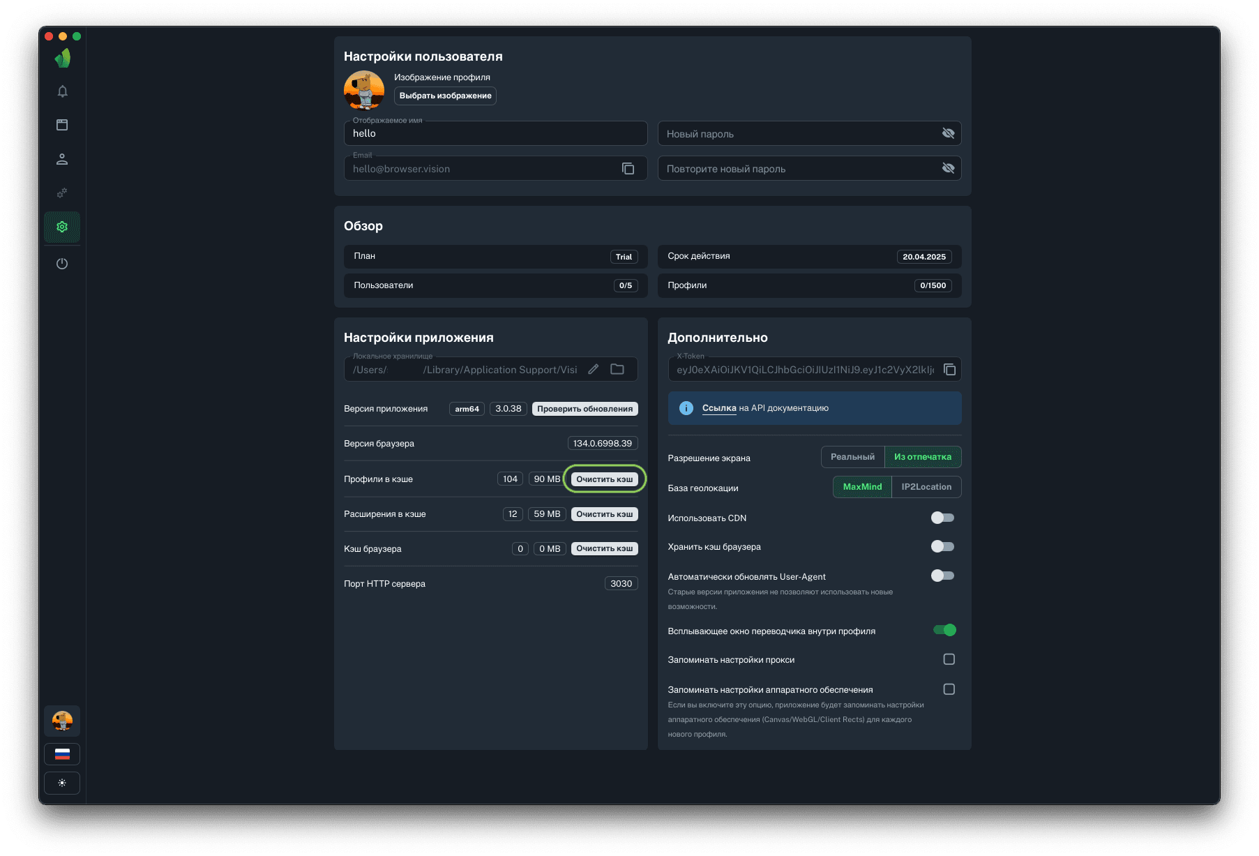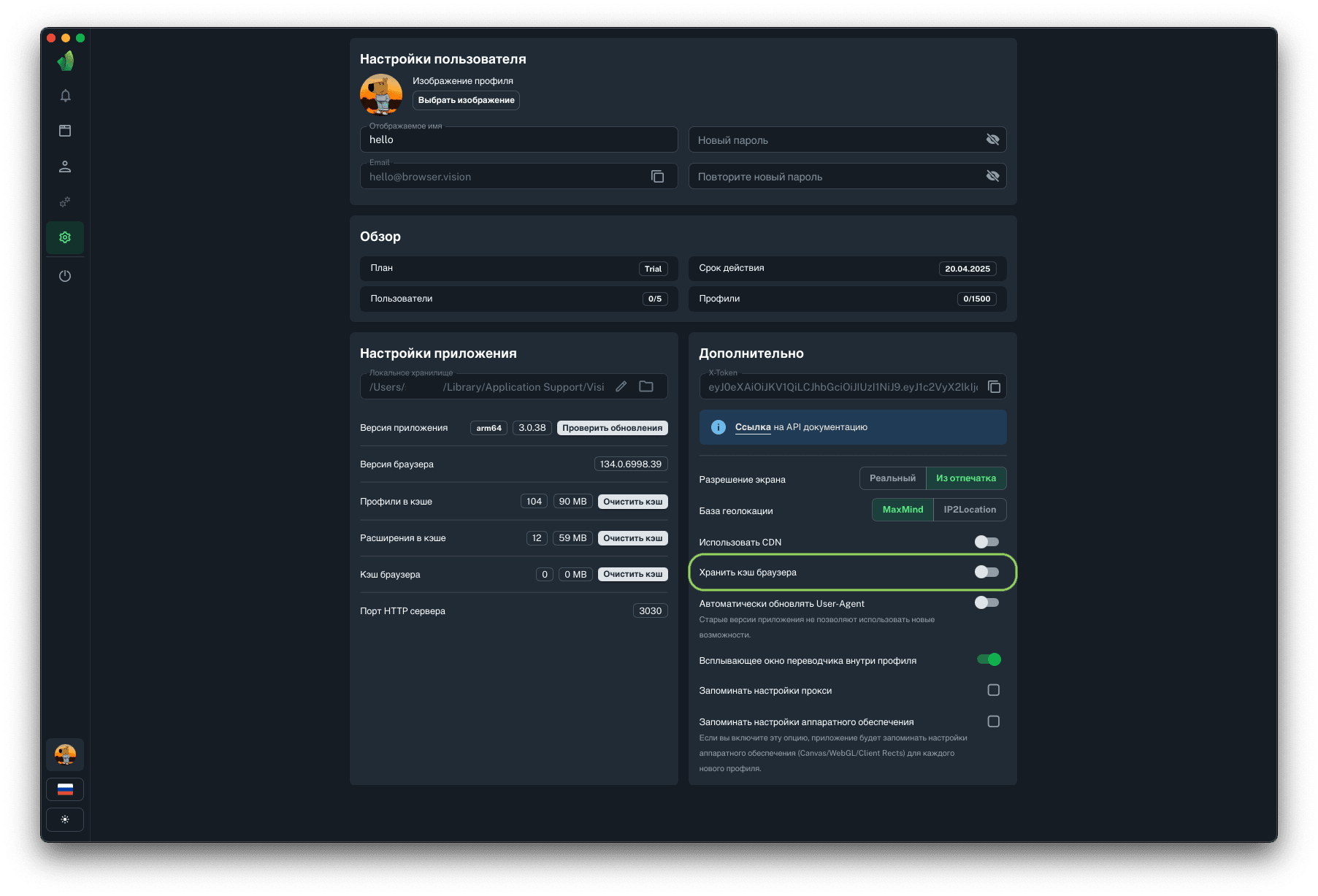 Данная функция будет полезен тем, кто использует прокси с оплатой за количество использованного трафика. Хранение кэша браузера позволит сохранять и переиспользовать данные (картинки, скрипты и т.д.), полученные во время загрузки страницы. В среднем это приведёт к экономии 80% средств на оплате трафика мобильных или резидентских прокси.
