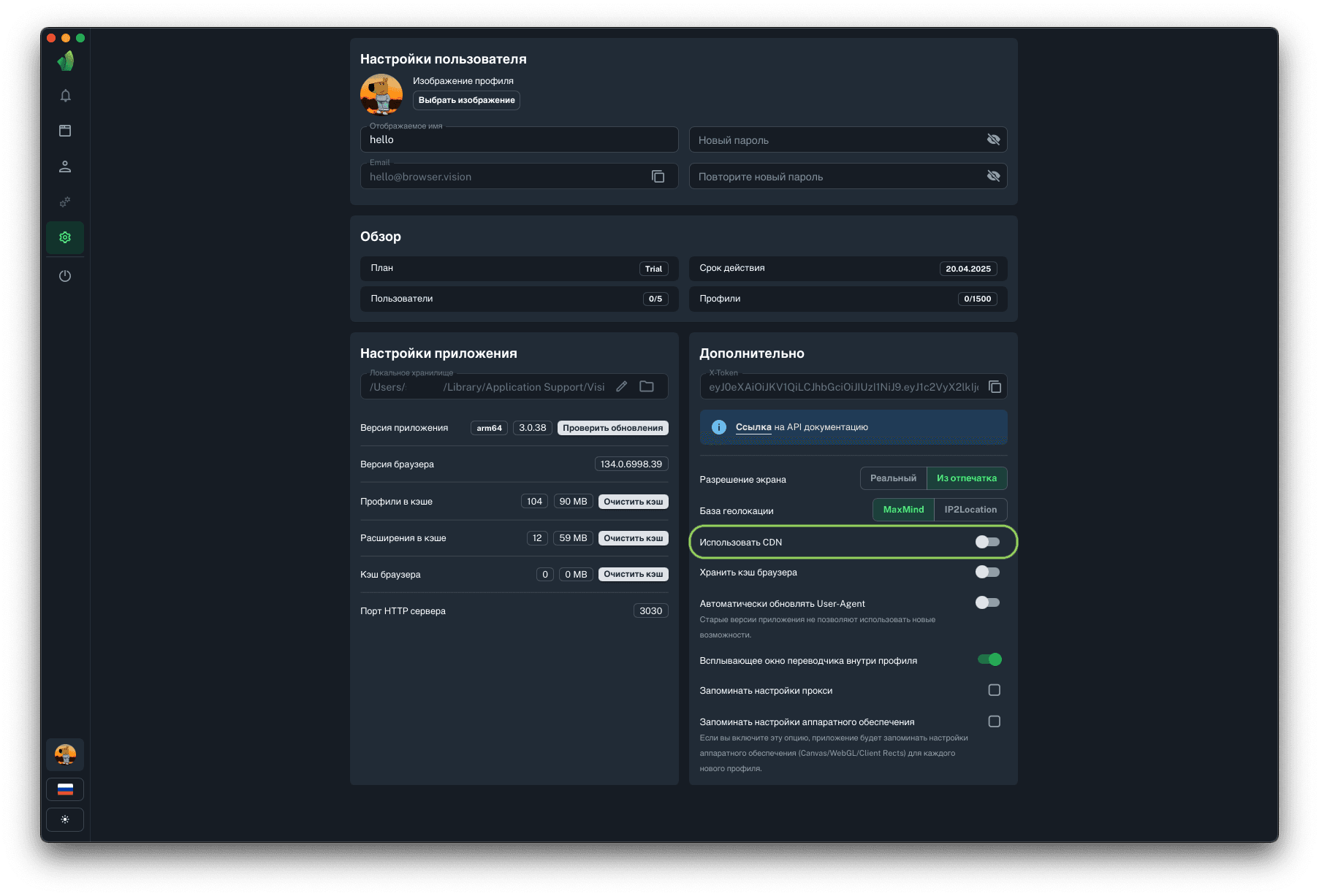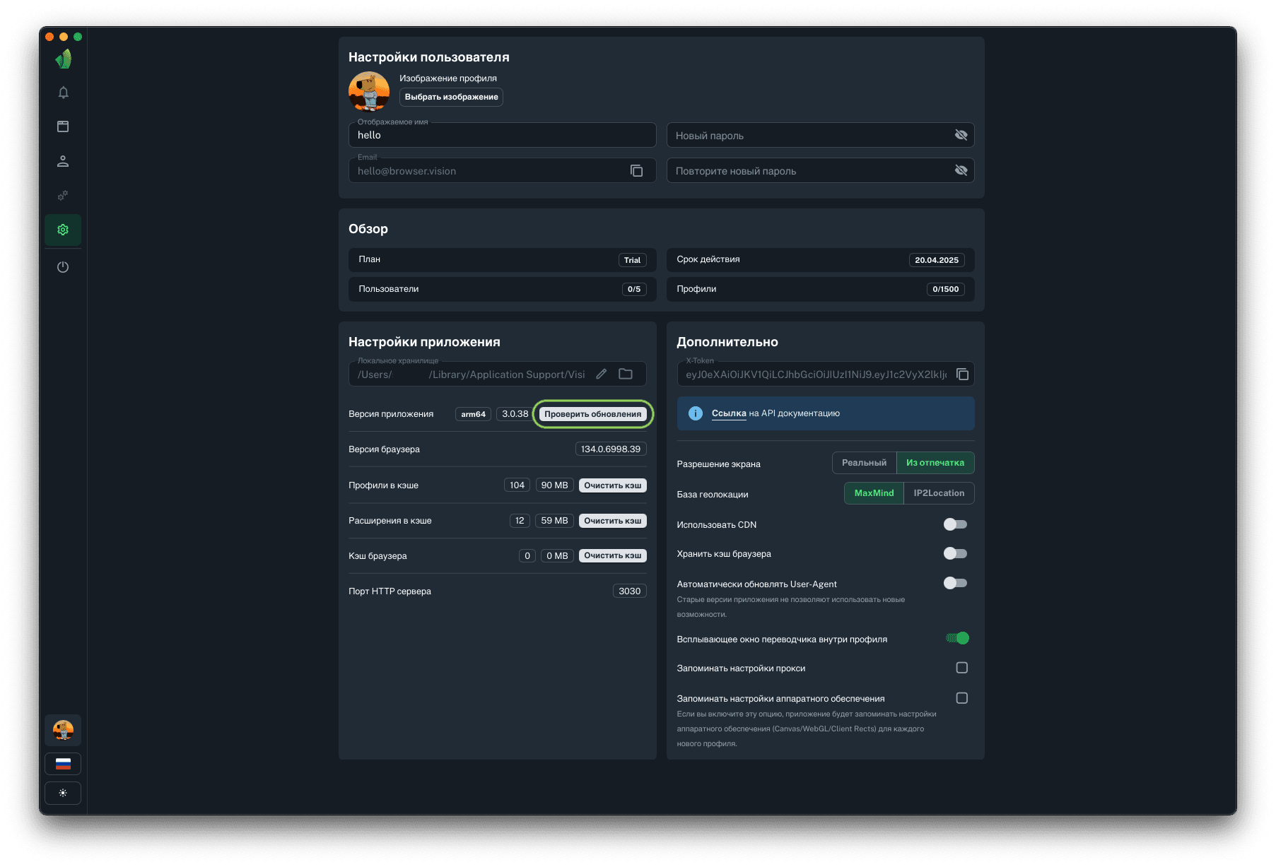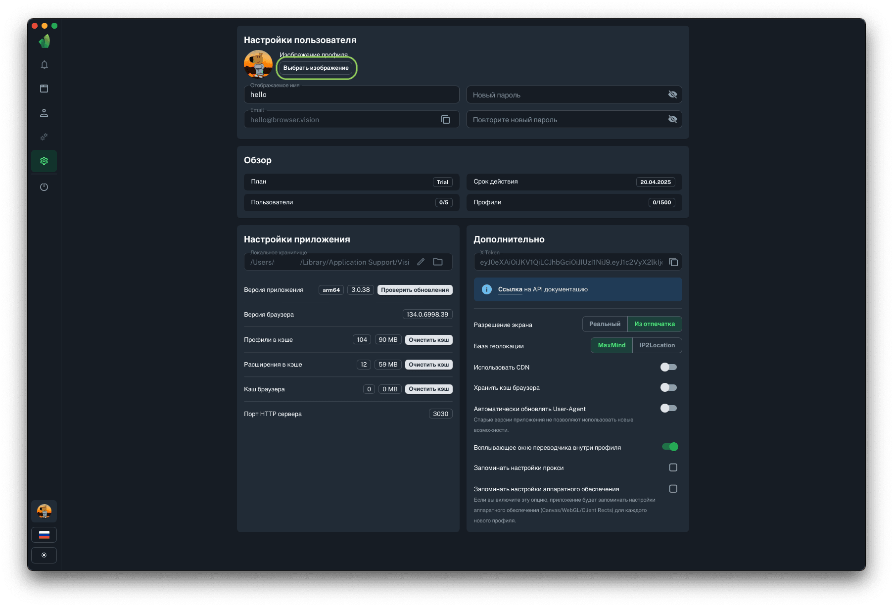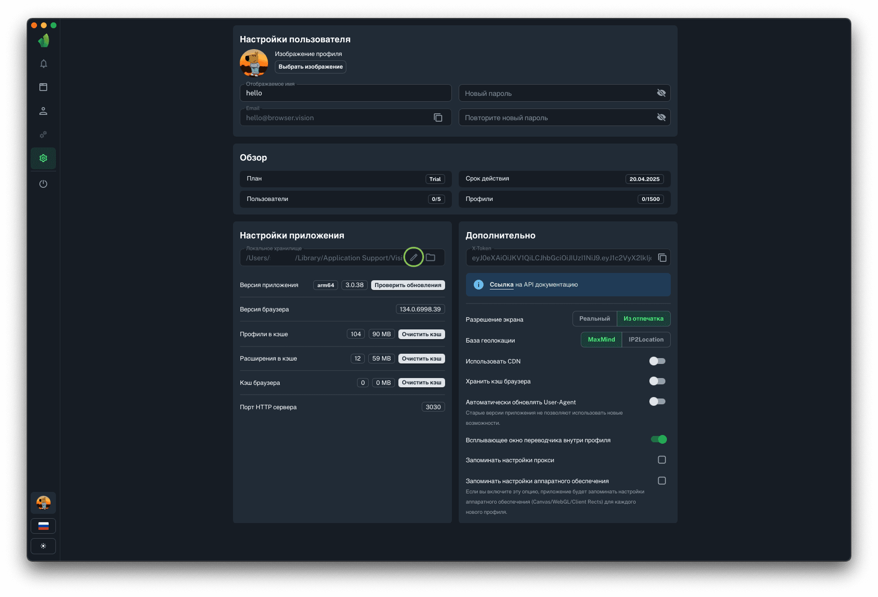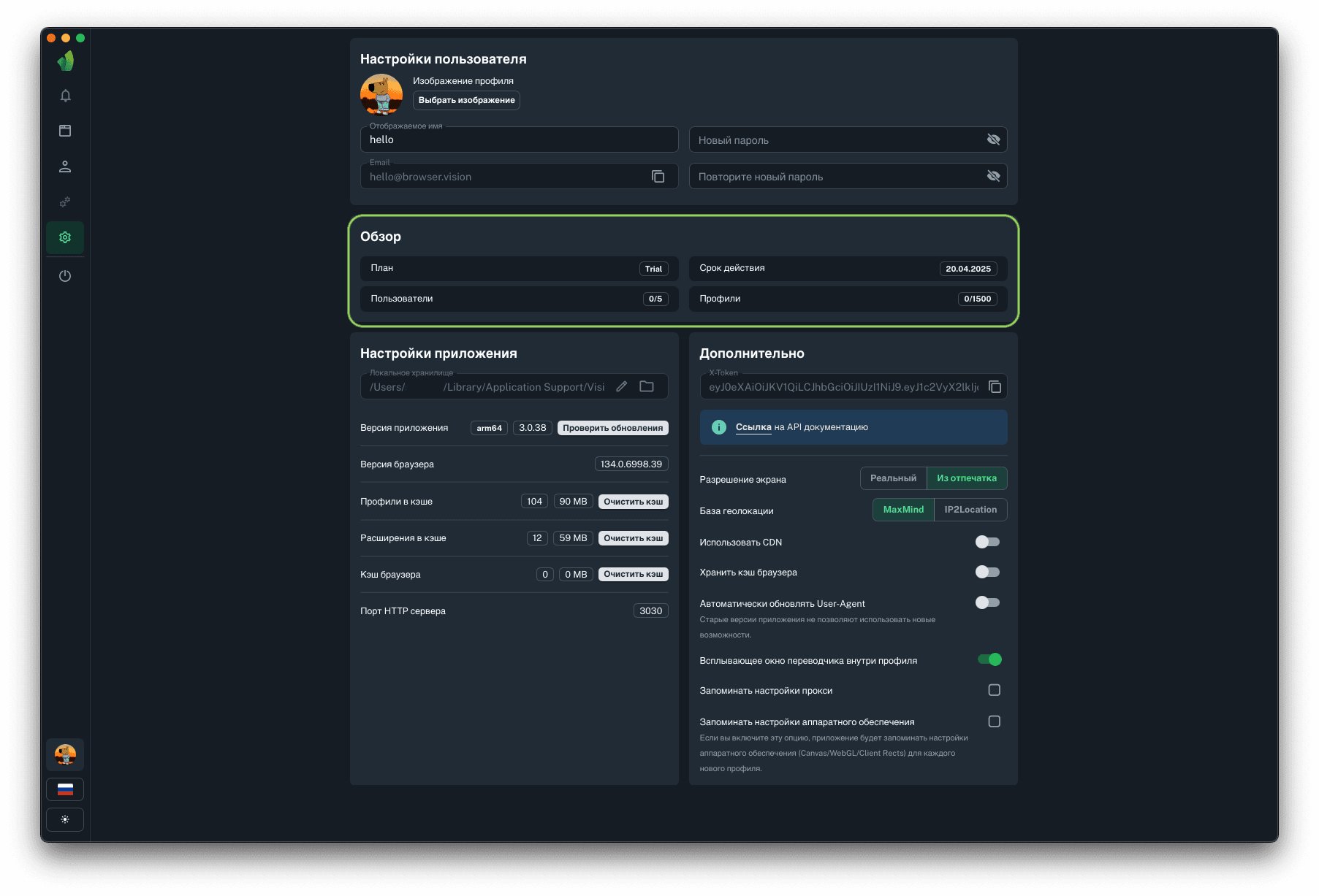 Для запуска профилей по API понадобится порт HTTP сервера, на который будут отправляться запросы на запуск и остановку профилей. Данный параметр не подлежит изменению.