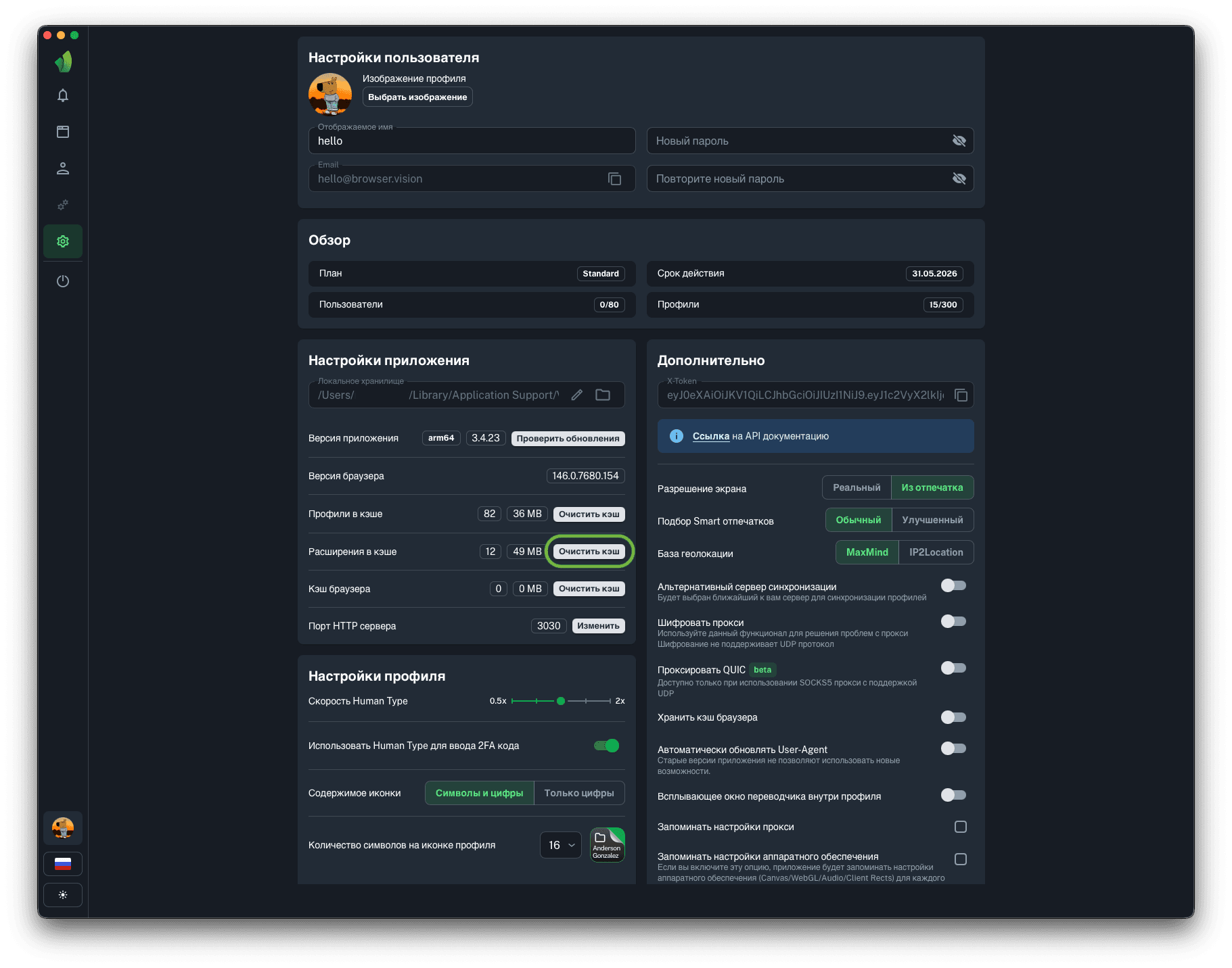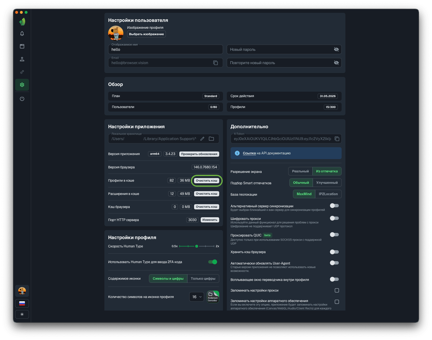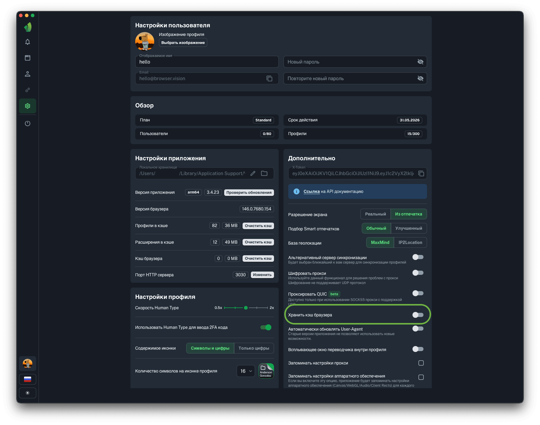 Данная функция будет полезна тем, кто использует прокси с оплатой за количество использованного трафика. Хранение кэша браузера позволит сохранять и переиспользовать данные (картинки, скрипты и т.д.), полученные во время загрузки страницы. В среднем это приведёт к экономии 80% средств на оплате трафика мобильных или резидентских прокси.