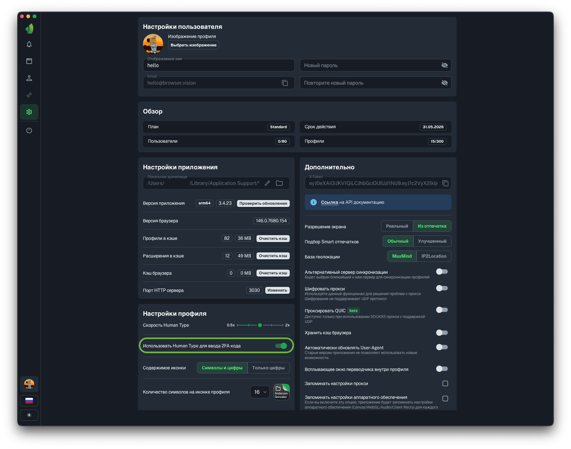Данный функционал позволяет использовать Human Type при вводе 2FA кодов, сгенерированных с помощью Vision Autofill. Данная настройка является глобальной и будет применена ко всем профилям.