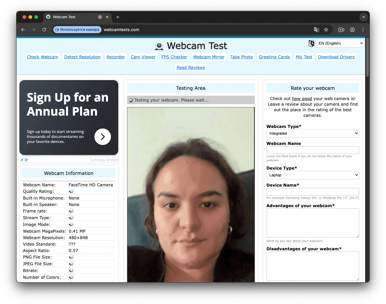 После выбора и загрузки необходимого файла можно перейти на сайт, который требует верификации и дать разрешение сайту на доступ к веб-камере. Для проверки можно использовать сайт webcamtests.com.
