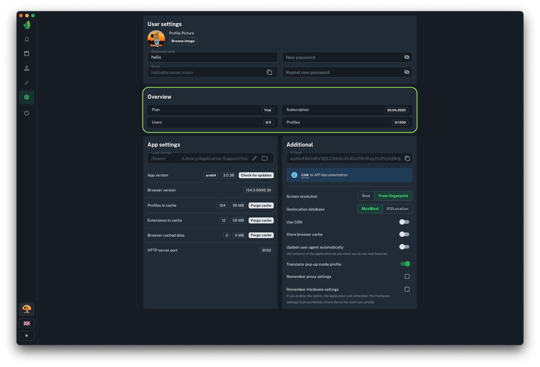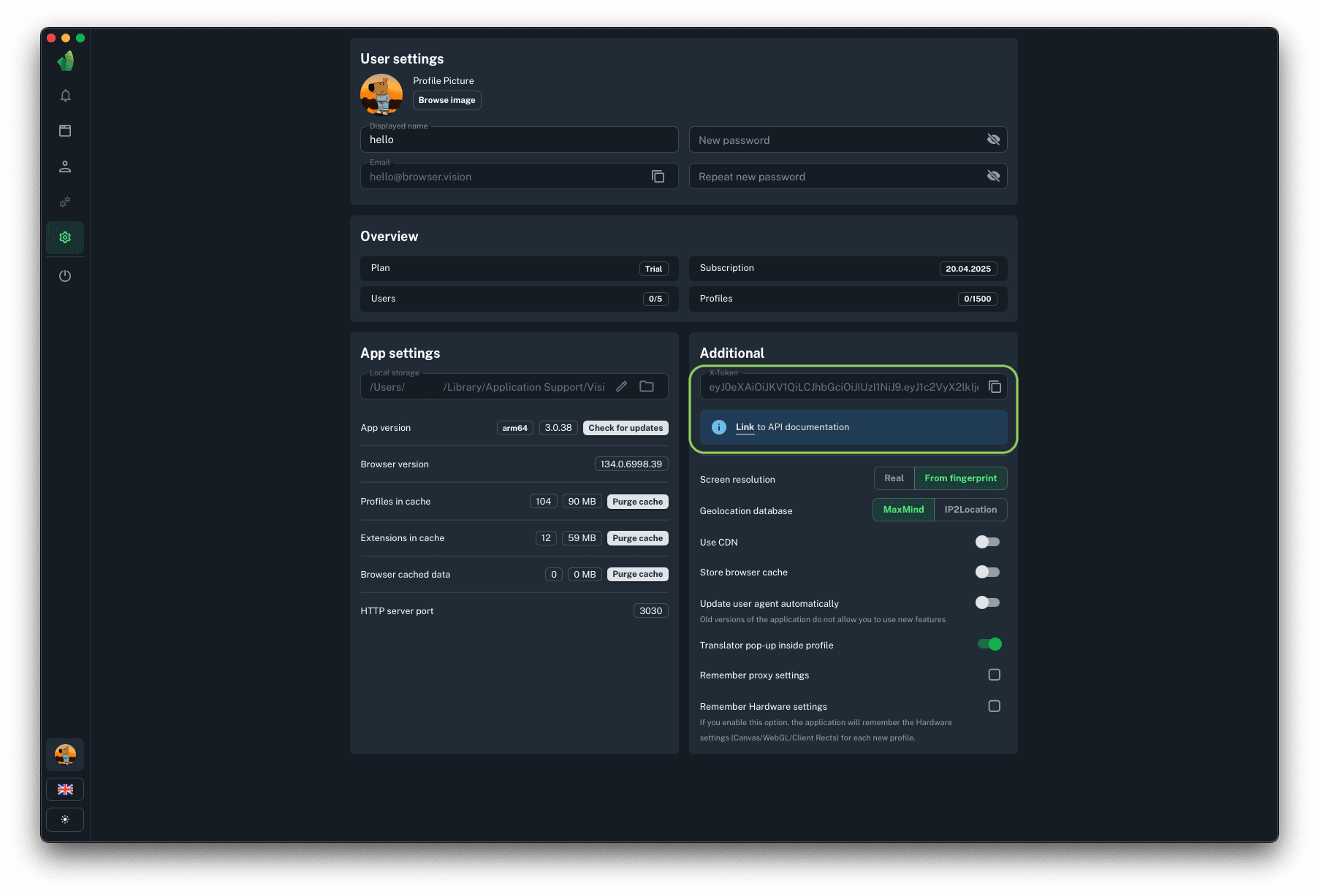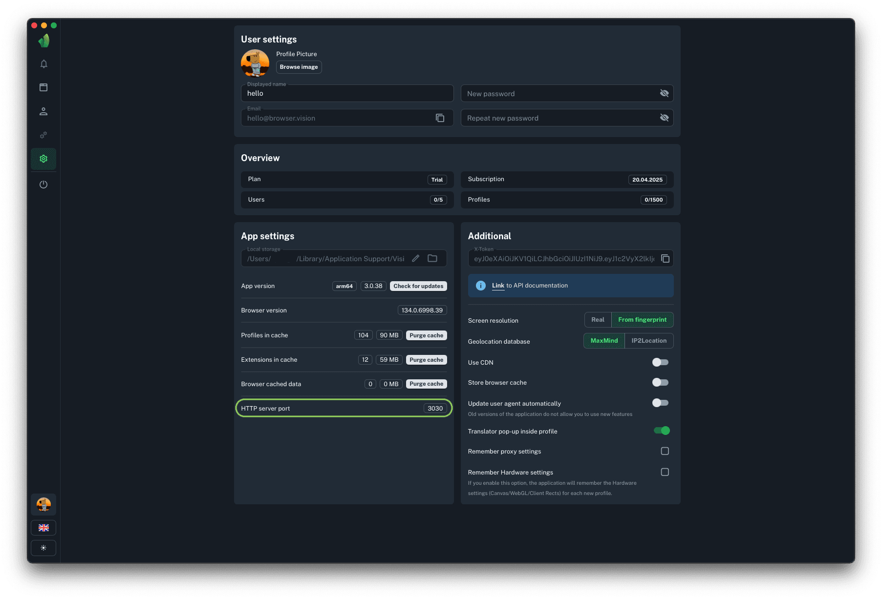 To start profiles via API you will need HTTP server port, to which requests to start and stop profiles will be sent. This parameter cannot be changed.