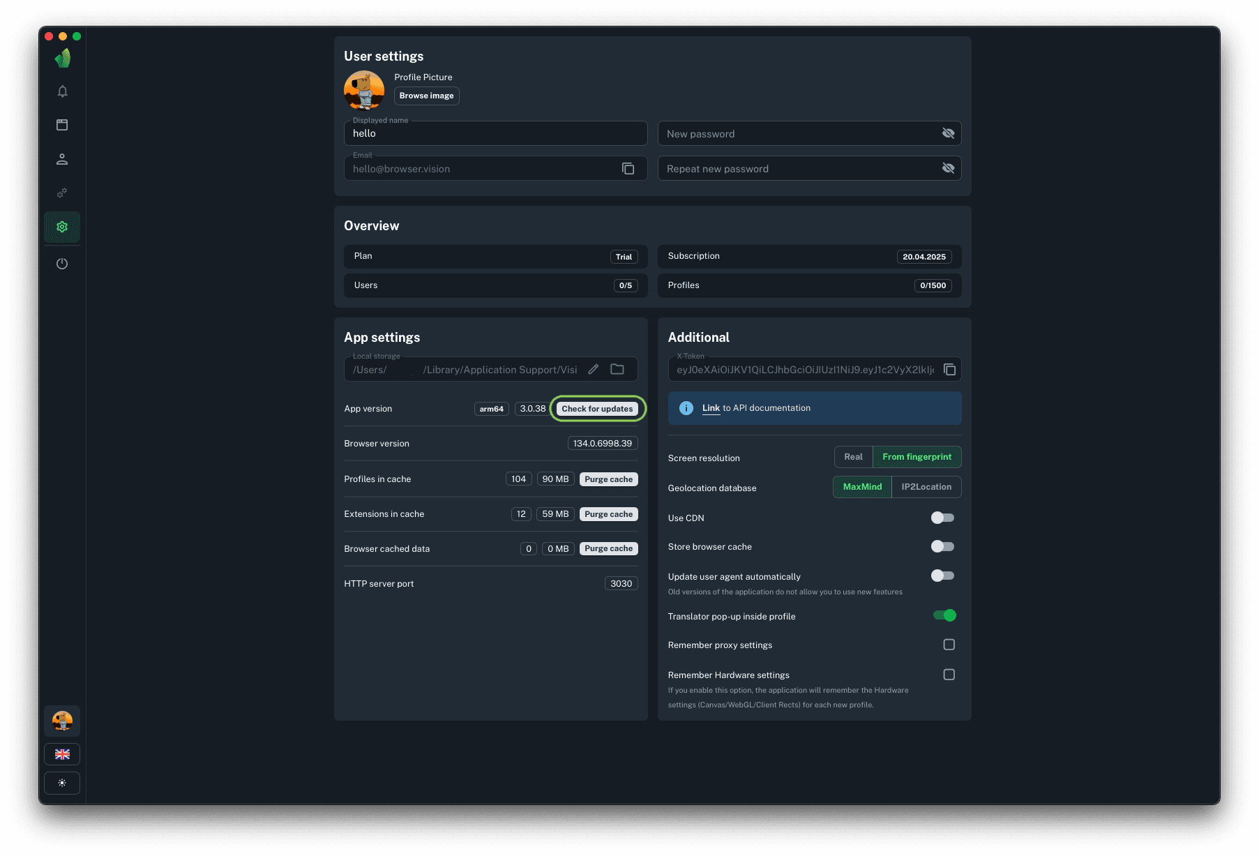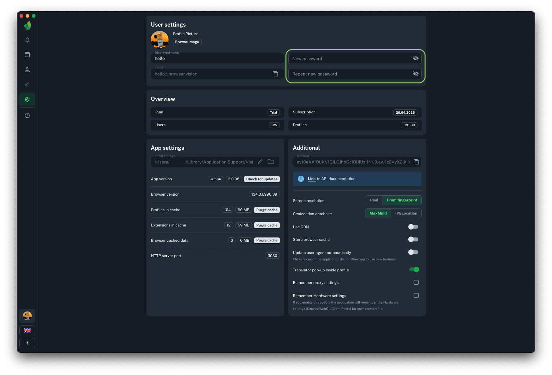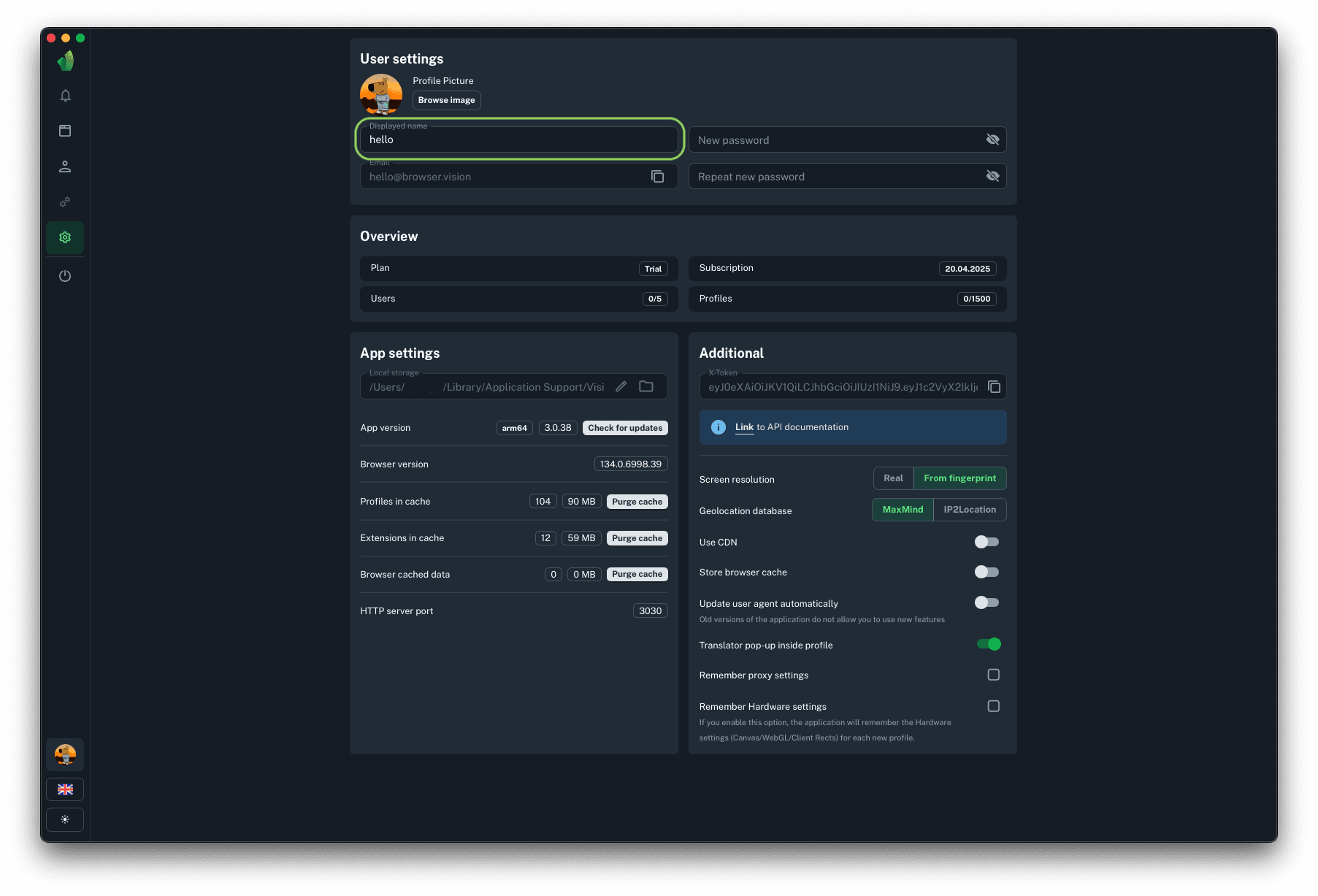 To start profiles via API you will need HTTP server port, to which requests to start and stop profiles will be sent. This parameter cannot be changed.