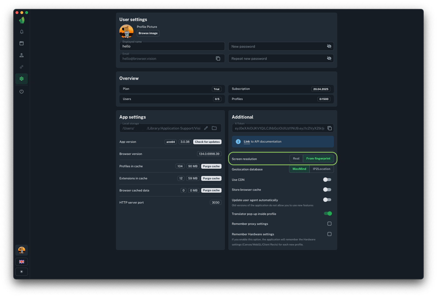 If From fingerprint is selected, each new profile will be created with the resolution specified in its fingerprint. This definitely increases trust, as it eliminates the possibility of selecting a resolution that is not specific to the device type. For example: there are no MacBook devices with a resolution of 640x480 pixels. However, if you specify such a resolution in your macOS profile, any anti-fraud system might get suspicious.