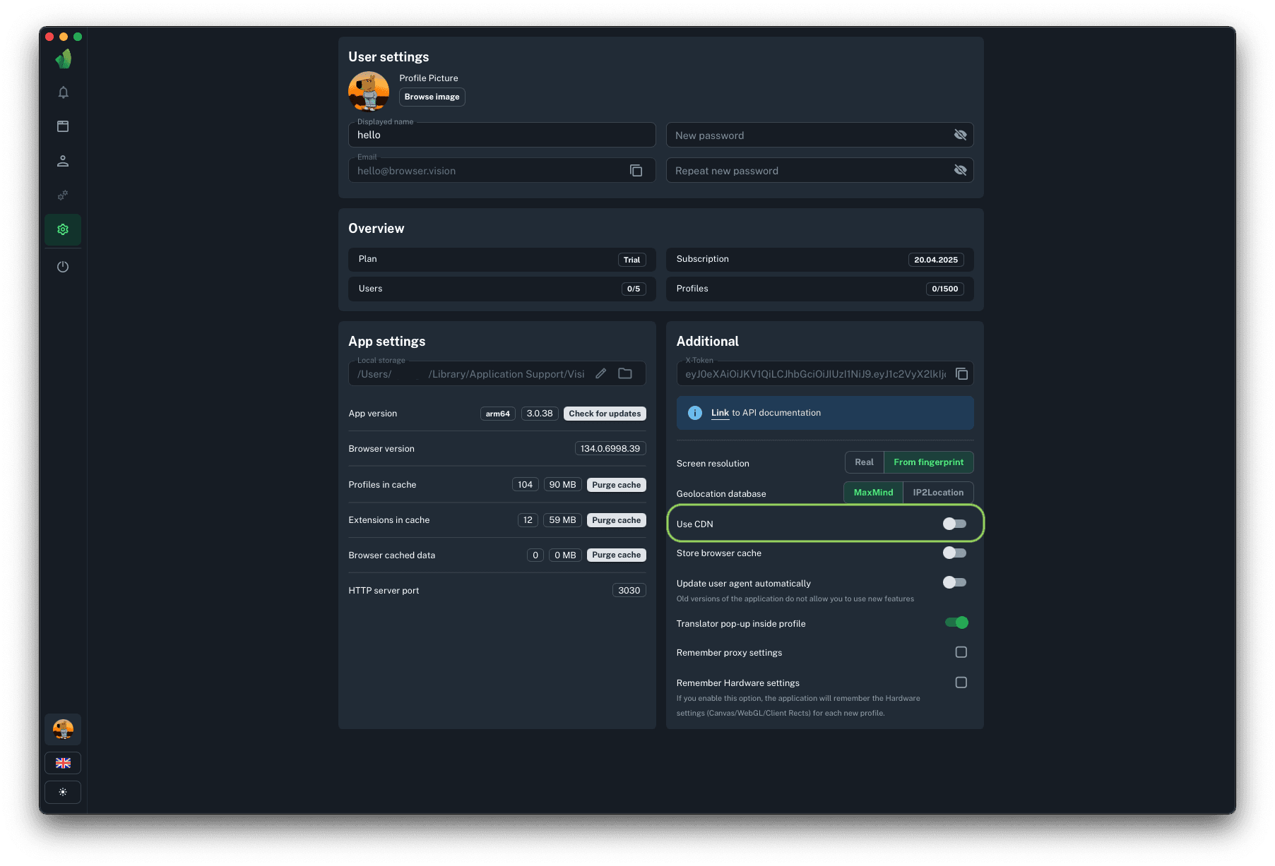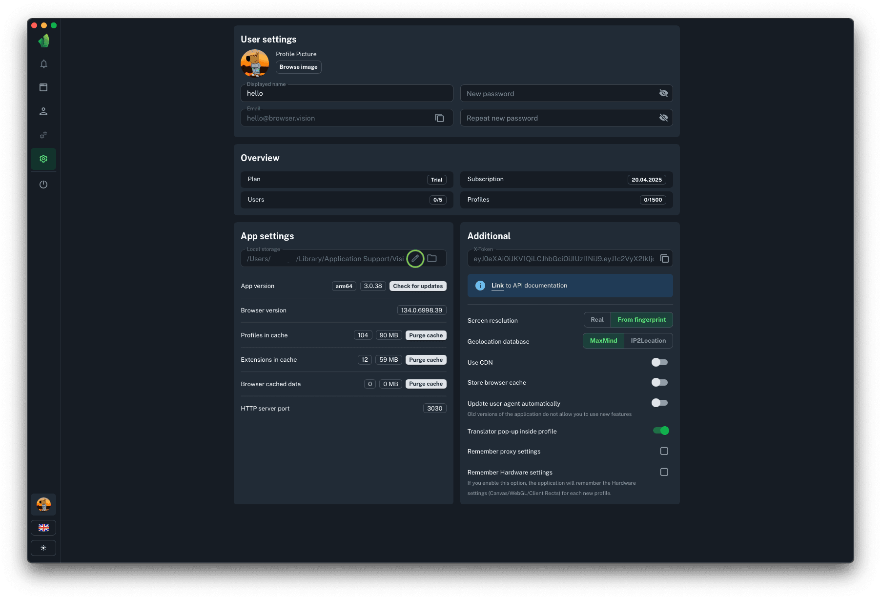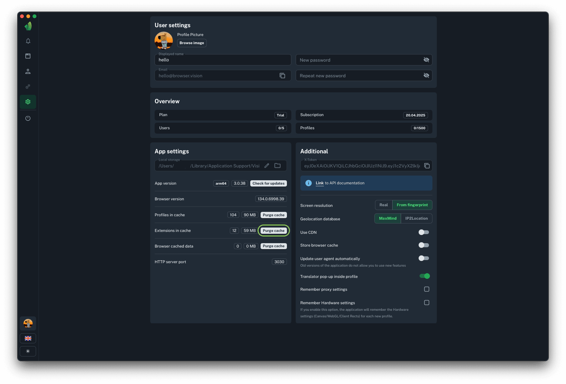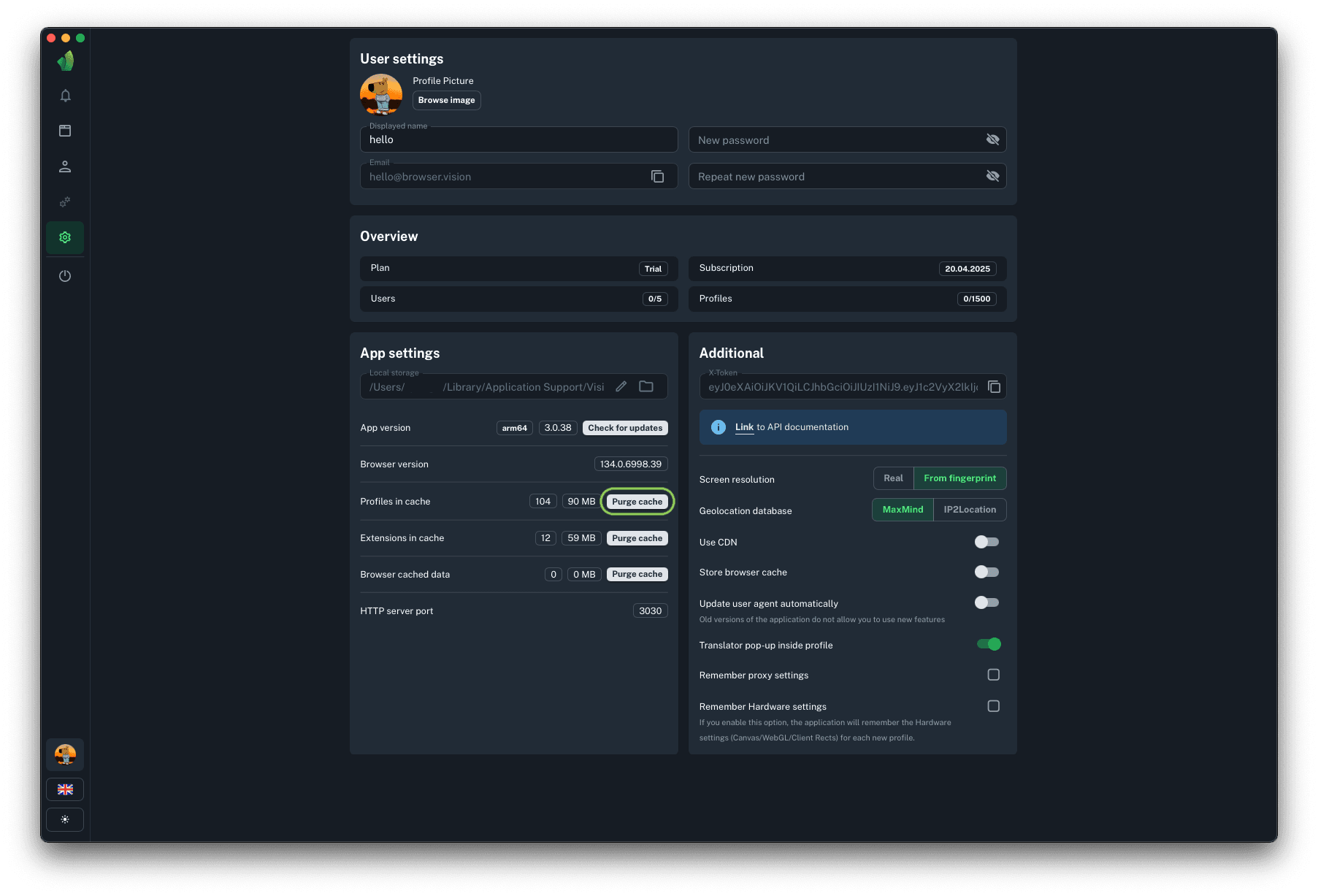 Local storage is a folder on the hard disk where all profile data, extensions, browser kernel and so on are stored. It serves as a buffer between the user's PC and the cloud storage. When opening and closing a profile, synchronization is performed. To speed up the synchronization, a copy of the information downloaded when starting a profile from the cloud is stored on the local PC disk and uploaded to it when the profile is stopped.