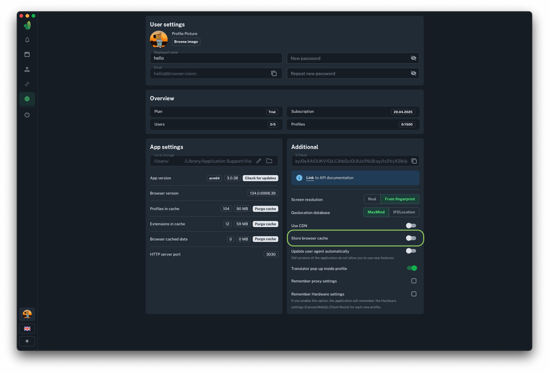 This function will be useful for those who use proxies with payment for the amount of used traffic. Storing browser cache will allow you to save and reuse data (images, scripts, etc.) received during page loading. On average, this will result in 80% savings on mobile or resident proxy traffic.