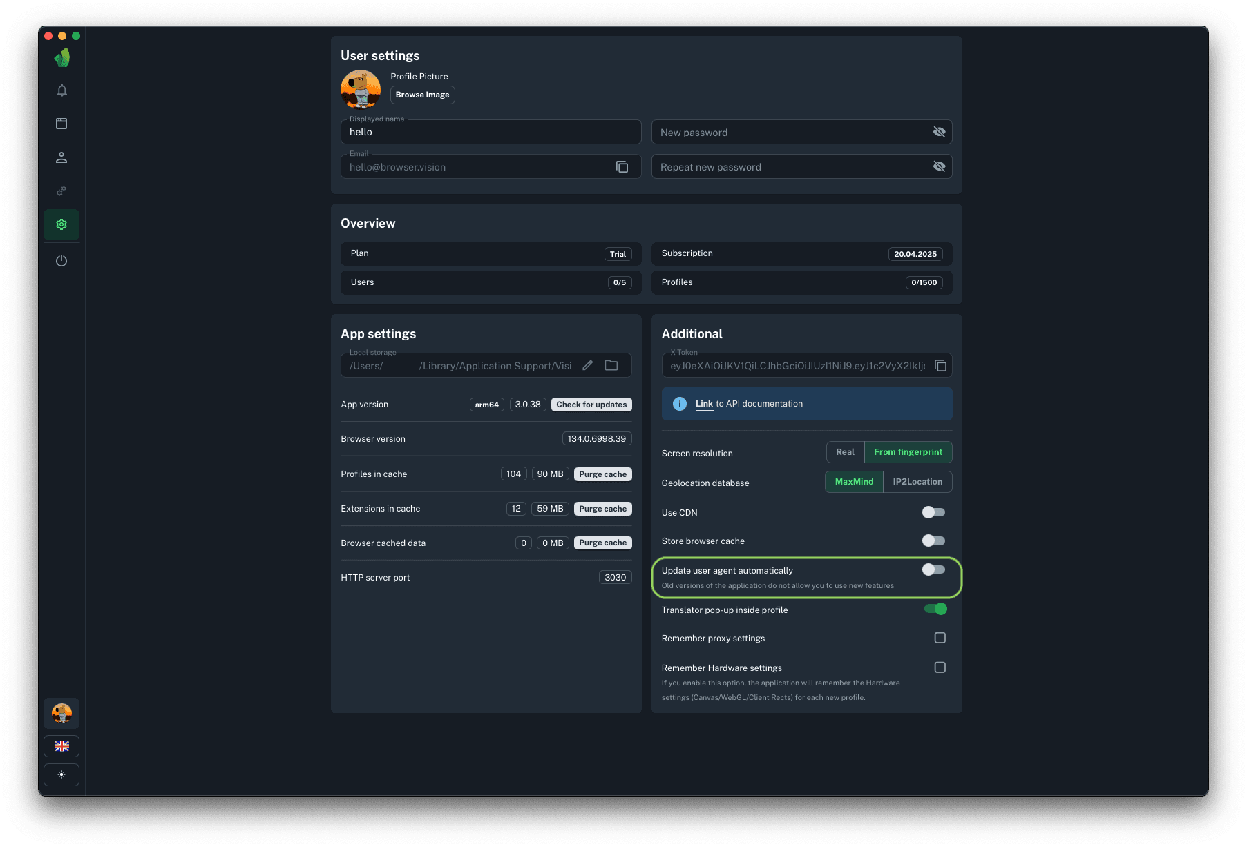 This functionality makes it possible to keep User-Agent on all running profiles up to date. Timely update of User-Agent is equal to timely update of regular Google Chrome, which means that such profiles will be completely normal for anti-fraud systems.