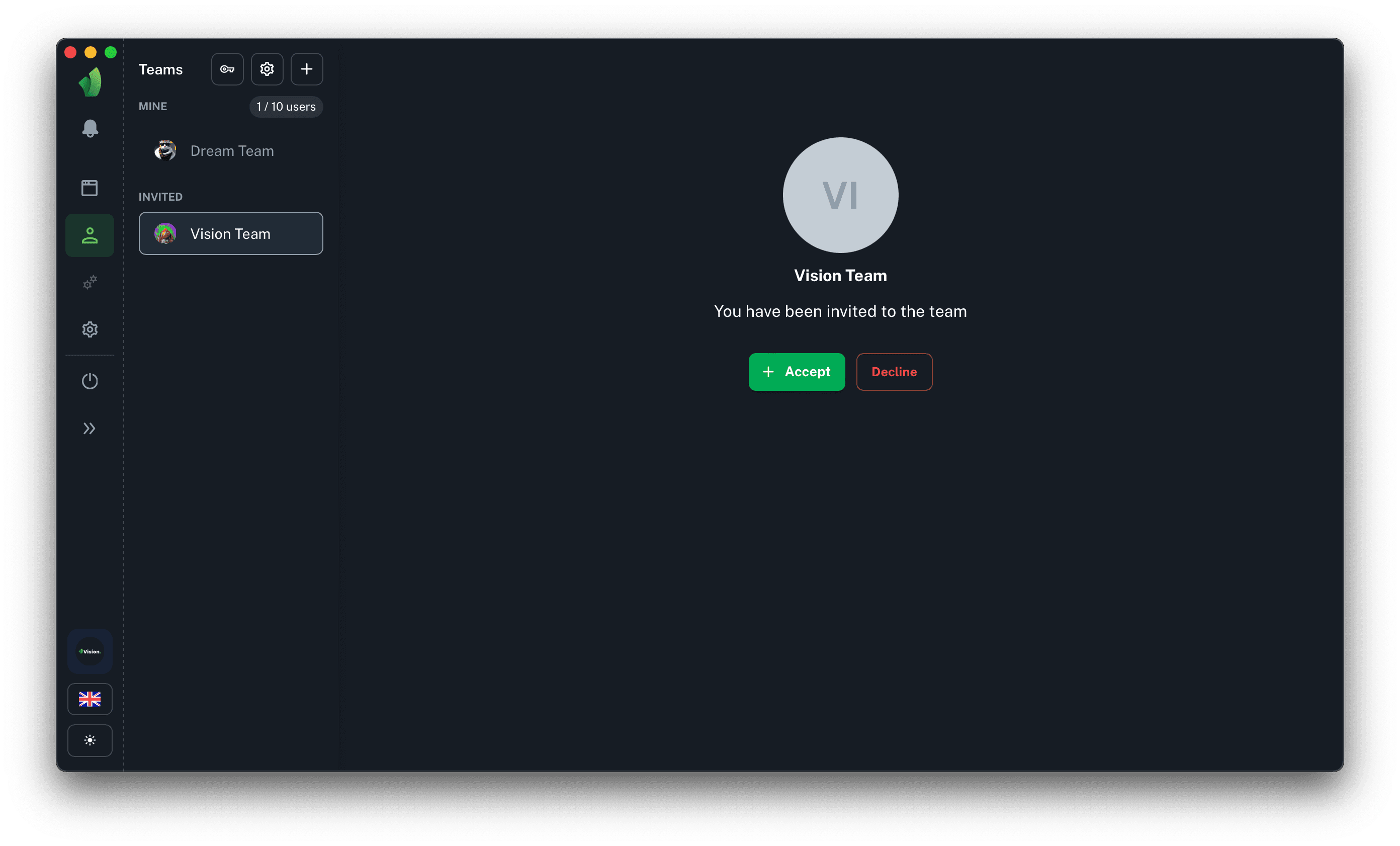 There are two ways to accept an invitation to join the team: in the application and from an email (in development).